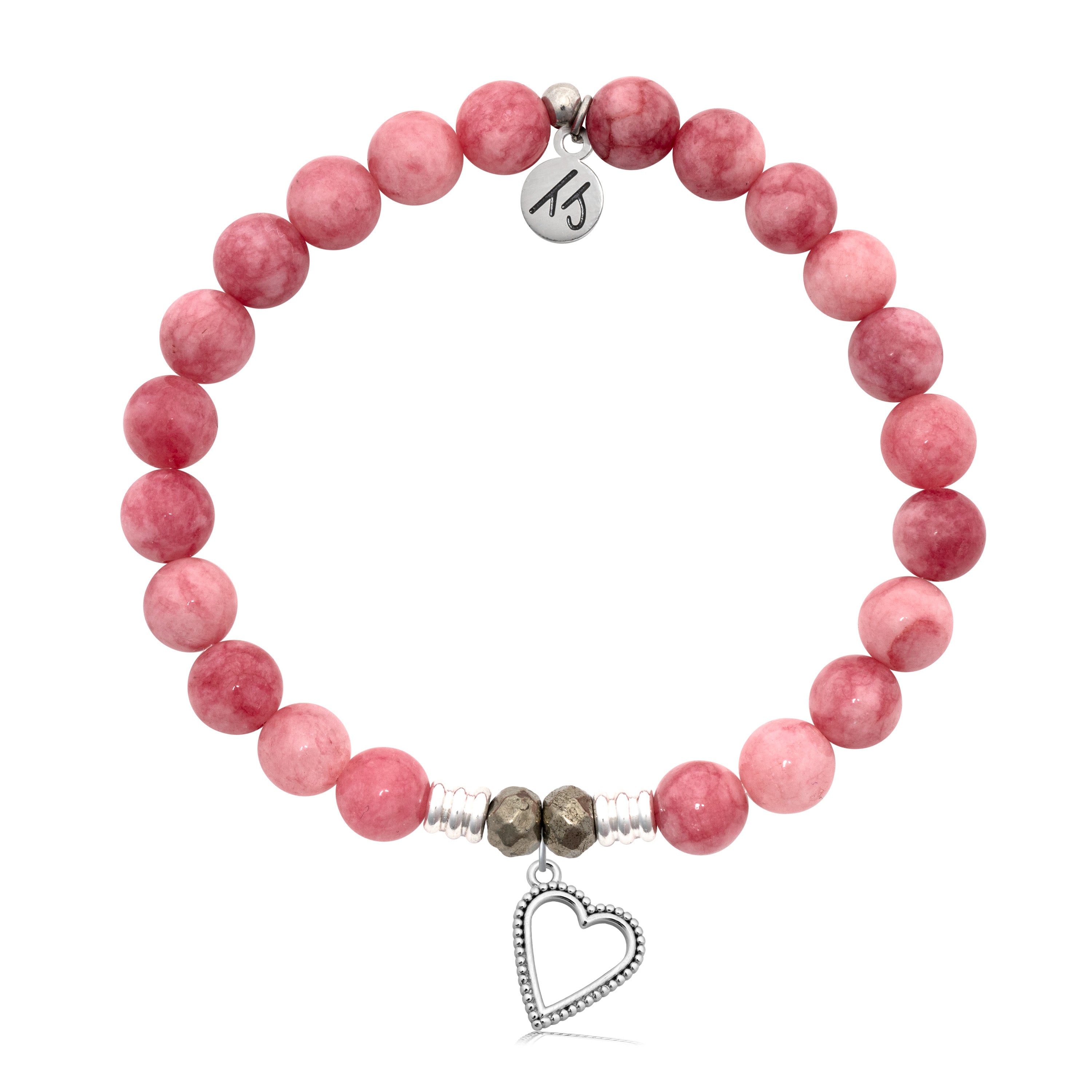 Pink Jade Gemstone Bracelet with Everlasting Love Sterling Silver Charm