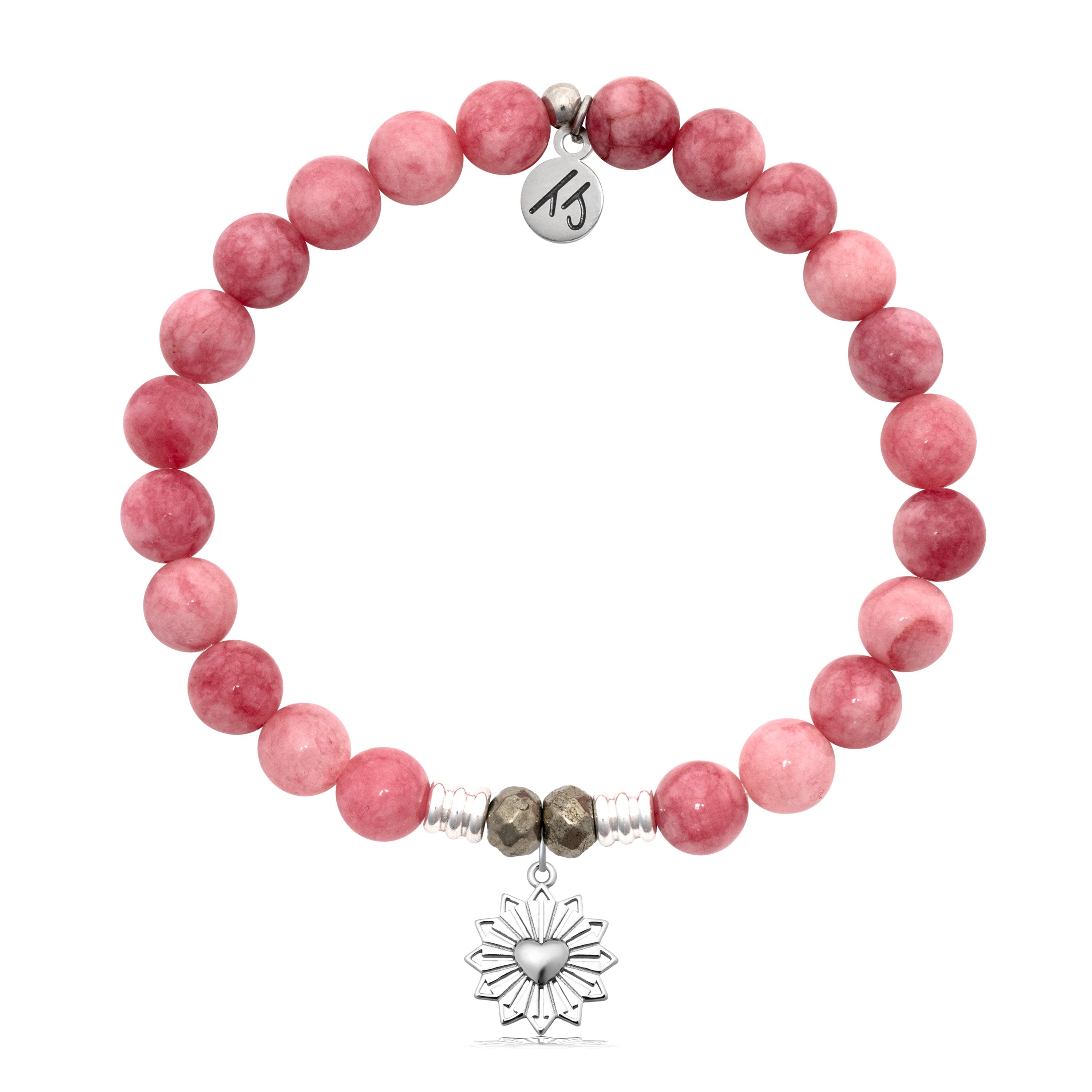 Pink Jade Gemstone Bracelet with Follow Your Heart Sterling Silver Charm