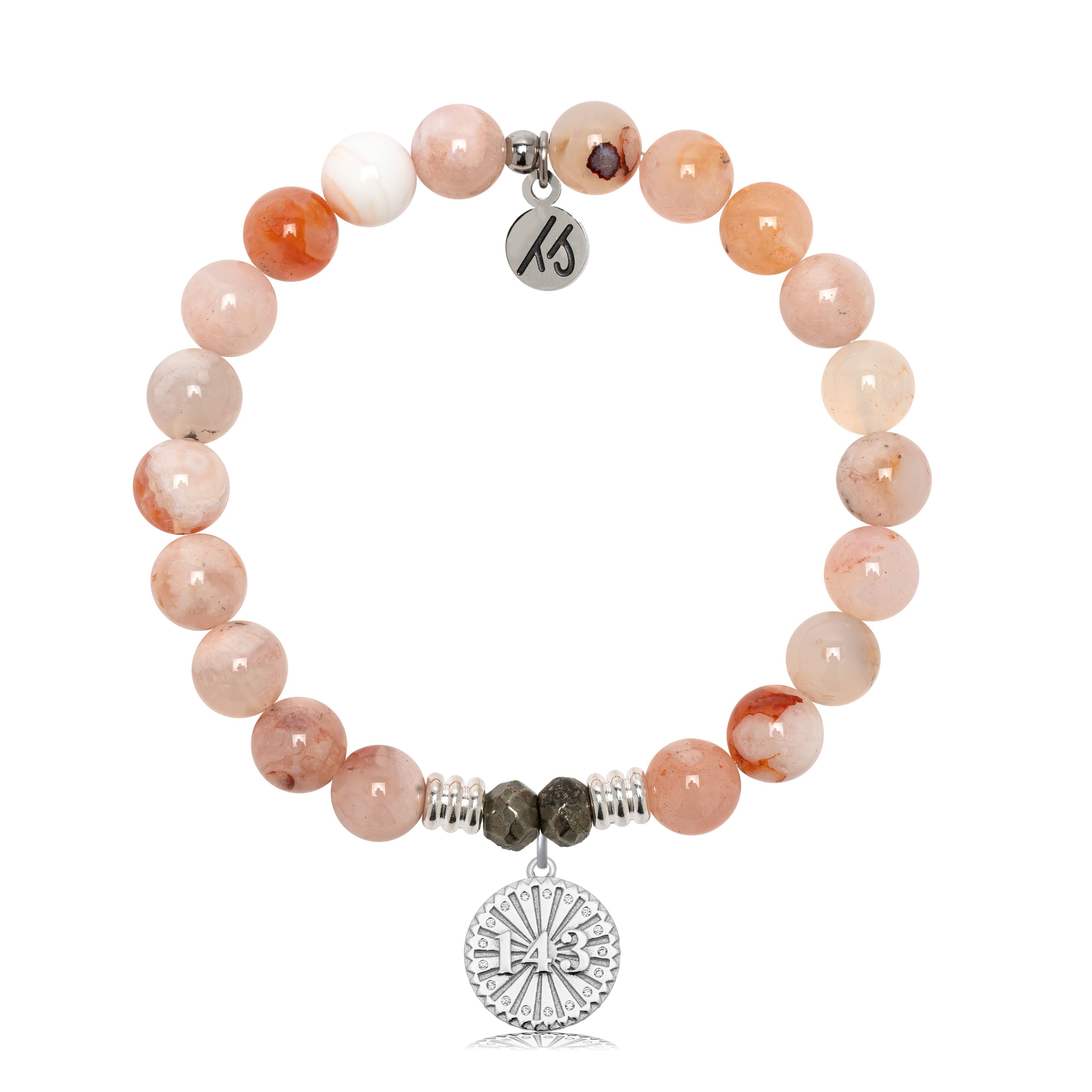 Sakura Agate Gemstone Bracelet with I Love You Sterling Silver Charm