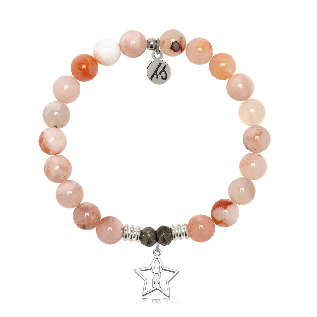 Sakura Agate Gemstone Bracelet with Mom Star Sterling Silver Charm