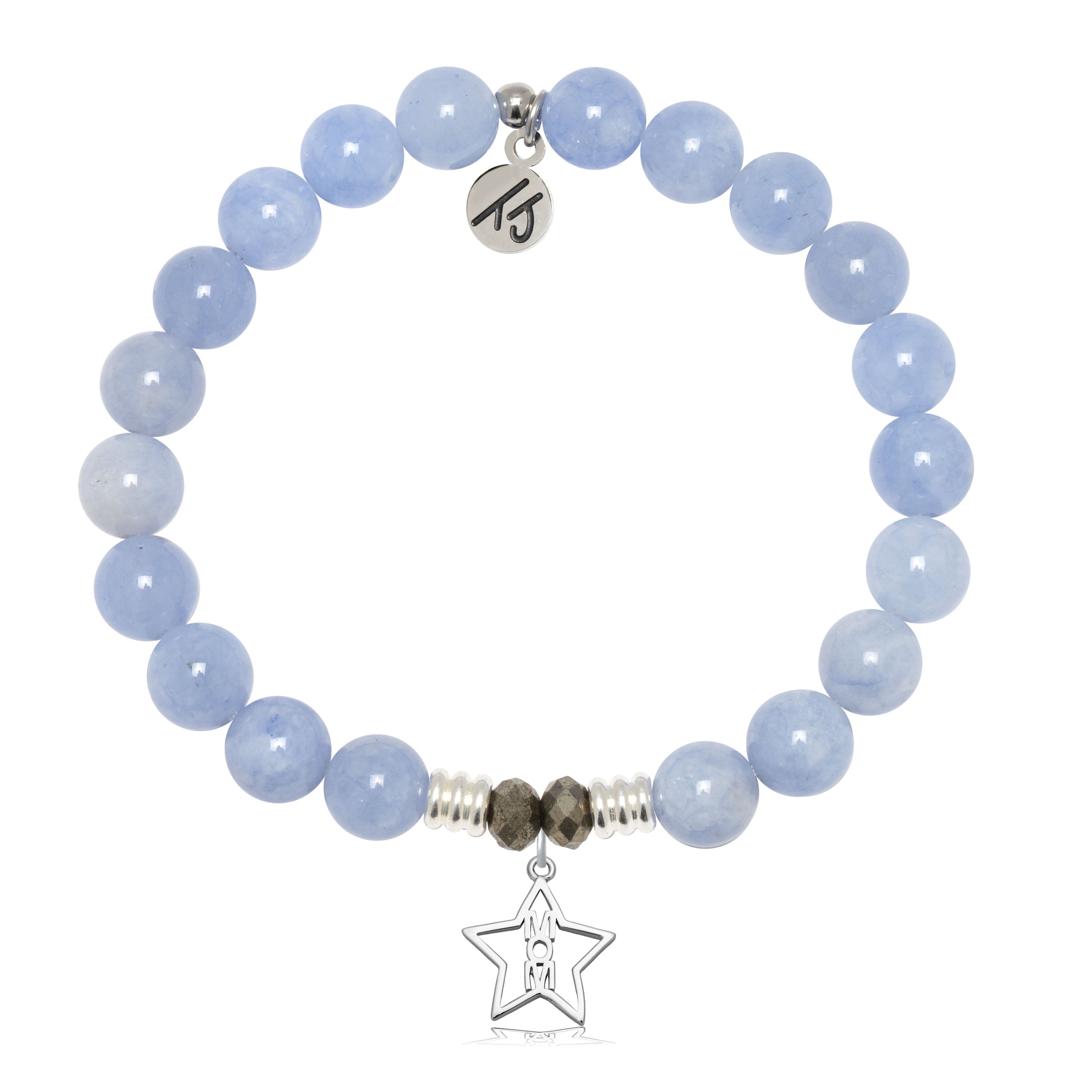 Sky Blue Jade Gemstone Bracelet with Mom Star Sterling Silver Charm