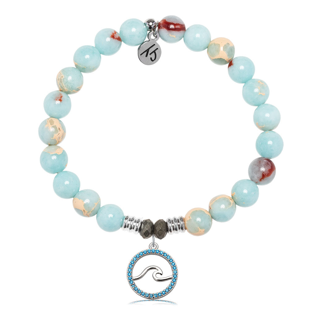 Snakeskin Jasper Gemstone Bracelet with Serenity Wave Sterling Silver Charm