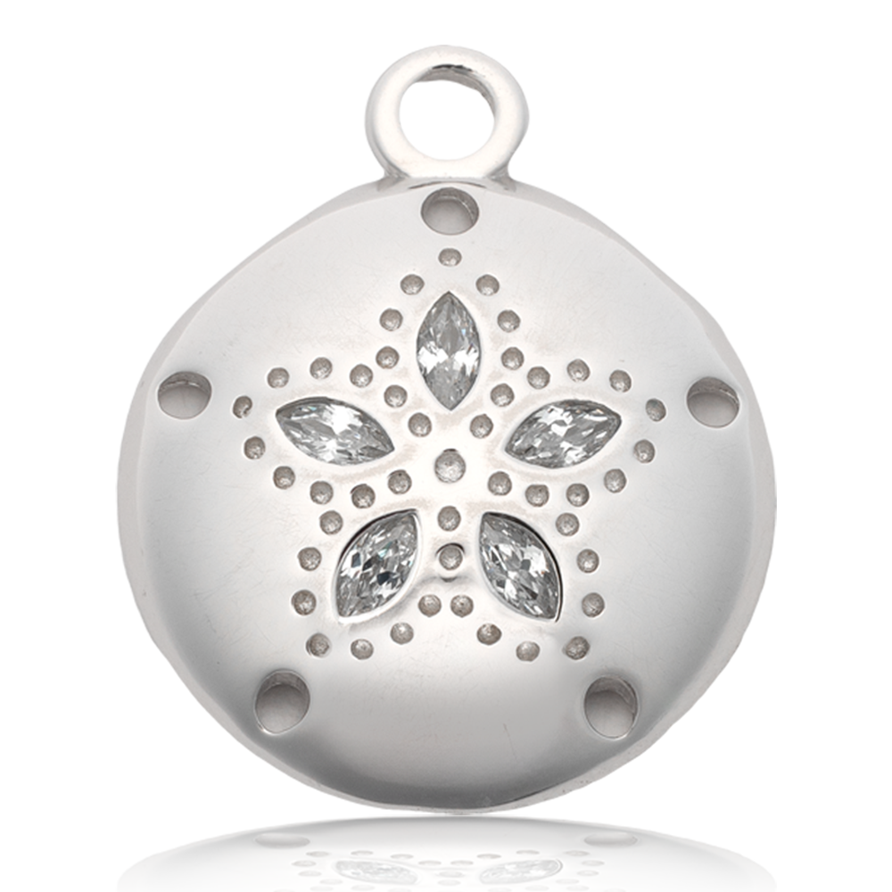 Sand Dollar Sterling Silver Charm Bracelet- Known as the coin of the Ocean, the 5 petals on a Sand Dollar represent family, friendship, unity, harmony and serenity. Let this charm be your reminder to see life's beauty all around you.
