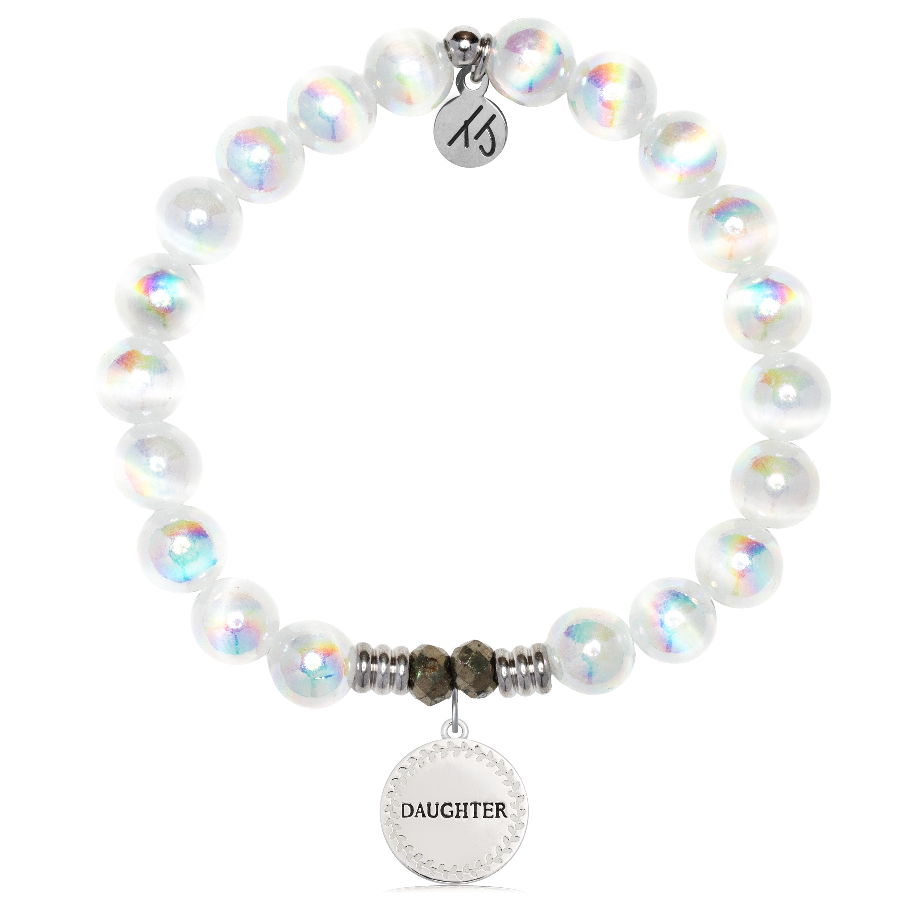 White Selenite Gemstone Bracelet with Endless Love Daughter Sterling Silver Charm